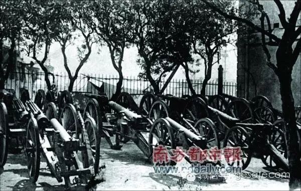 36门克虏伯大炮,口径87毫米(1897年埃森制造),折合3.41英寸,其中大部分仍装在箱中。 60门克虏伯大炮,口径70毫米(1897年埃森制造),折合2.75英寸。 42门诺尔登费尔德式速射机关炮,口径57毫米,折合2.24英寸。 42门诺尔登费尔德式机关炮,口径47毫米或1.85英寸。 42门大炮,其中一部分为诺尔登费尔德式,一部分为上海机器局制造,口径37毫米折合1.45英寸。 10门速射机关炮,口径37毫米,折合1.45英寸。 20门小口径的速射机关炮。 3万支具有最新标记的毛瑟枪和曼里彻式来福枪。 3万把刺刀、军用品及其他。