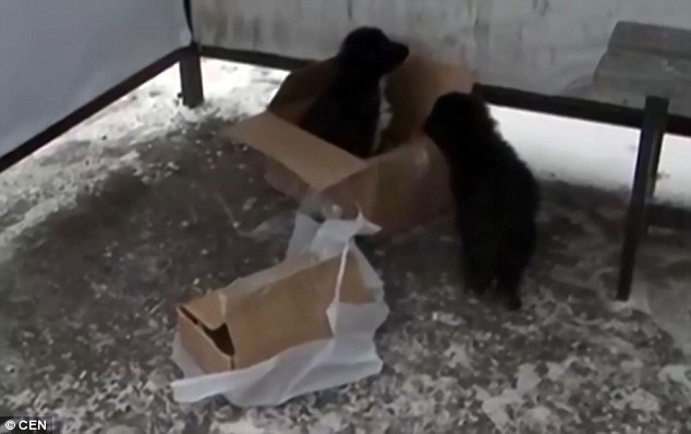 在专家研究不久后就意识到,纸箱里有生命存在,于是他们打开纸盒发现了两只小狗和一只小猫。