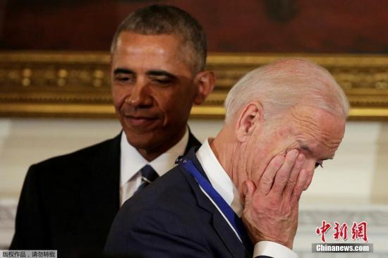 当地时间1月12日,美国华盛顿,奥巴马给副总统拜登颁发总统自由勋章。