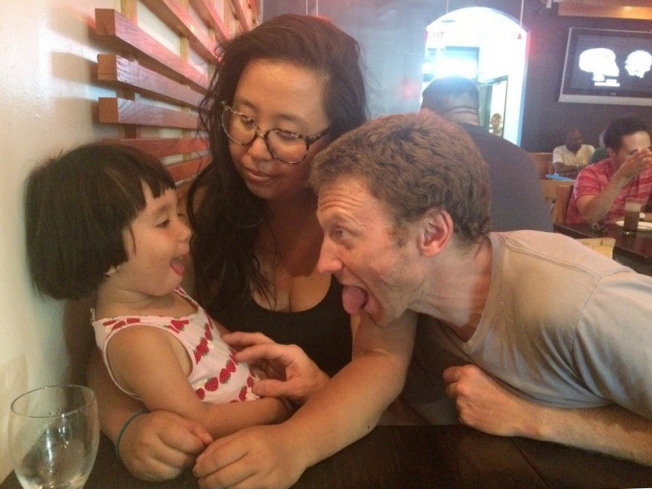 林晏文(中)与丈夫和女儿的合影。(林晏文提供)