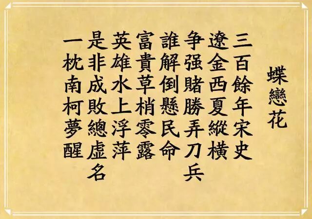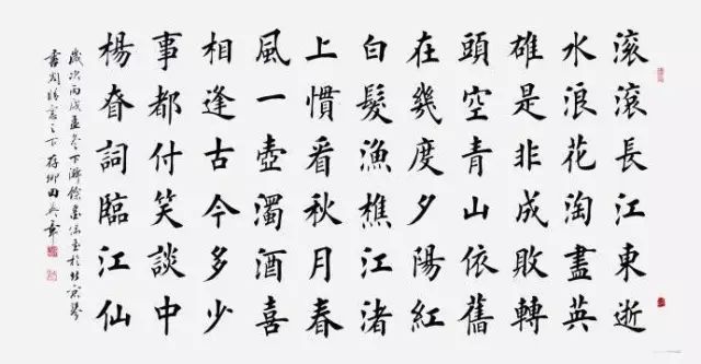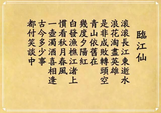 滚滚长江东逝水,浪花淘尽英雄。是非成败转头空,青山依旧在,几度夕阳红。
