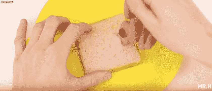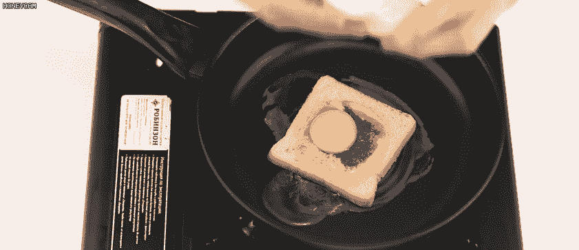 外壳换成面包片也同样适用哟,用勺子把面包片掏个洞。在锅中倒油,面包片放入煎锅内,打入鸡蛋。等鸡蛋凝固后翻个面。