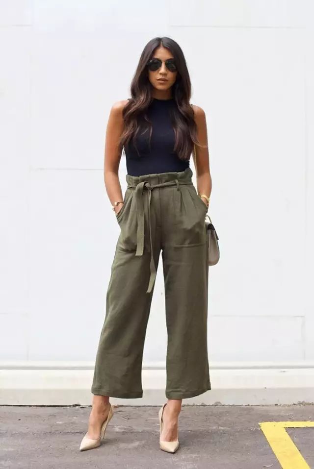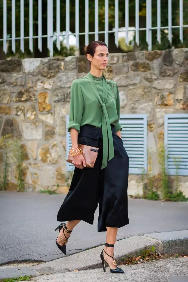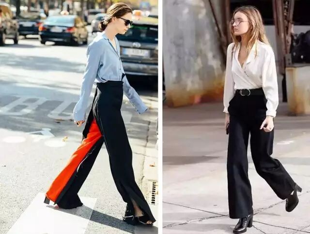 上班族们穿衬衫+阔腿裤配高跟鞋,绝对就是精练又时髦的办公室女郎形象了。