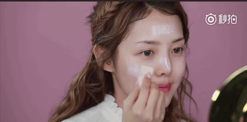 Step1:在上底妆的时候加入一点高光提亮液,提亮苹果肌,不仅可以让面部看起来饱满一点,还能提亮肤色,看上去有光泽。