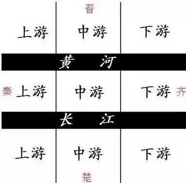 中游:古荆州,今湖北、湖南一带。春秋楚国称霸于此。