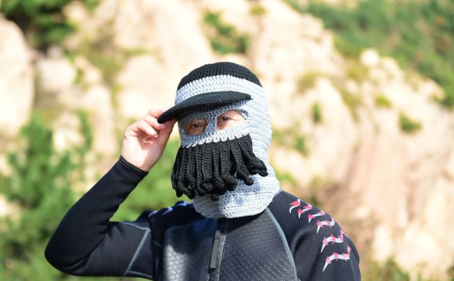 “脸基尼发明人”、青岛大妈张式范日前公布第七代“脸基尼”冬季版,最新的“脸基尼”以毛线编织而成,适合寒冷天气下仍需外出工作或行山人士。不过嘴部有多条向外的“胡须”,遭网友联想成“加勒比海盗里的八爪鱼船长”。
