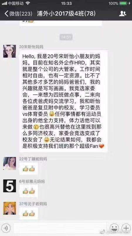 今天一则家长竞选家委会的微信截图刷爆朋友圈,并引发网友热议。