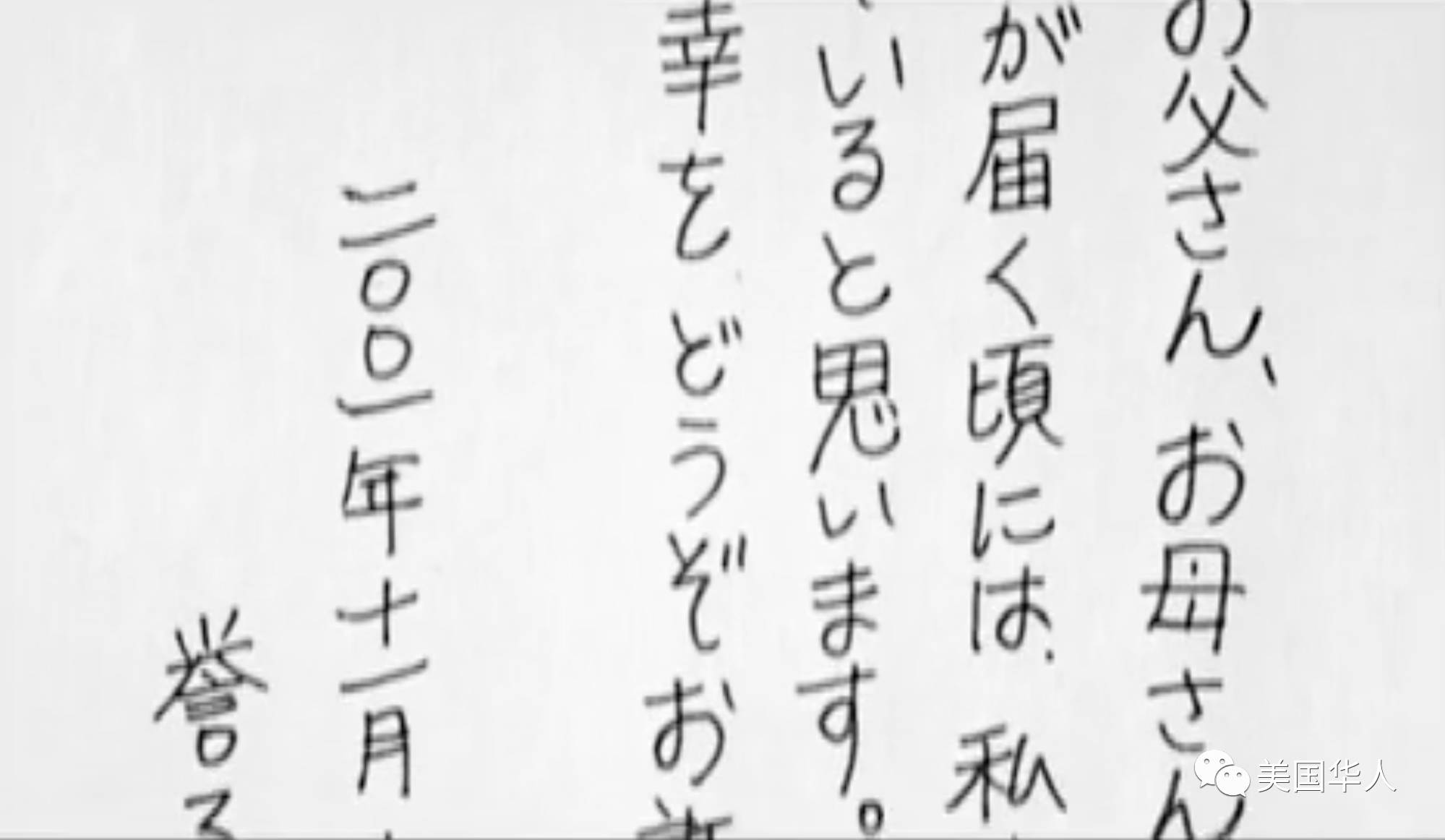在小西去世几个星期以后,警方才发现她的绝命书。在遇到杰西警官的那天,她把这封信寄给了日本的父母。在信中,她请求父母原谅自己的不孝,说自己去意已决,并已经处置了自己的所有家当。