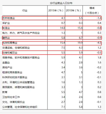 再来看2015年的分行业就业数据。在2015年2170.5万常住人口中,近半数在从事较低端的产业。这些底层劳动力密集分布的行业,在2015年似乎已初见成效。
