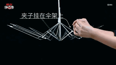 伞架也能继续利用呀,去掉伞布后,在伞骨架上挂上晾衣夹。