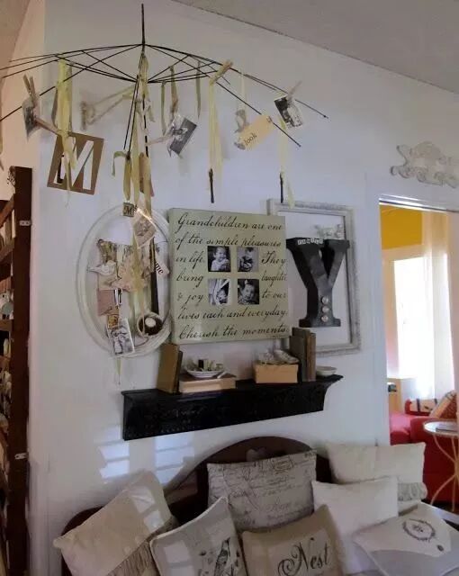 除了挂阳台晾衣服,挂在客厅变成挂饰也是美美哒,绑一些丝带,夹几张家人的照片,又创意又温馨。