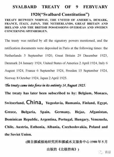 能在斯瓦尔巴的群岛建站的权利,是近百年前北洋政府通过条约的形式划来的。