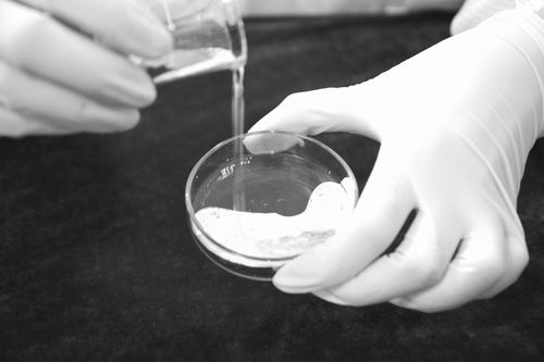 在室温条件下,以镓为主要成分的液态金属可以像水一样流动。(科学报 童岱摄)