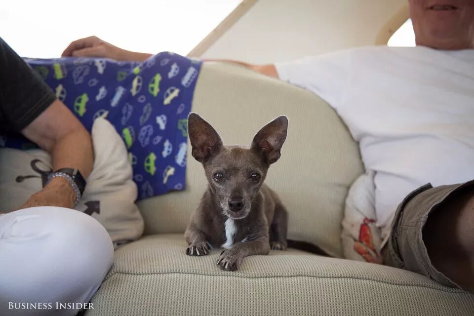 船舱内的生活空间差不多有900平方英尺(约83平方米),足够夫妻俩外加他们的宠物狗Roxie生活在一起。