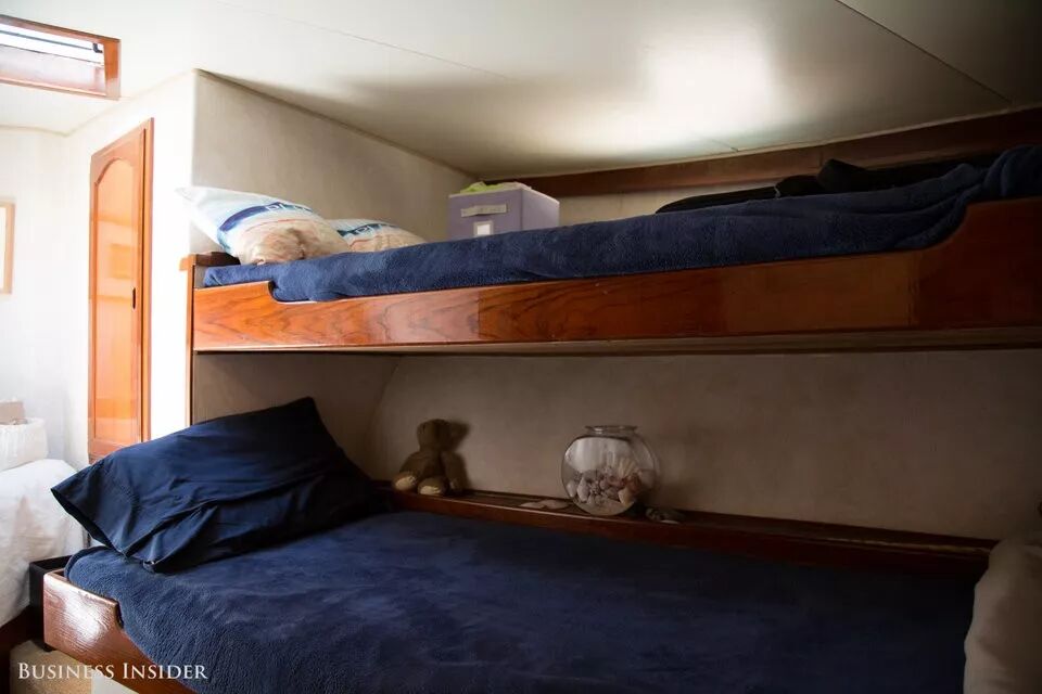 Kraft夫妇的船看着不大,但实际有上下两层,下一层甚至有2间客房,其中一间里面装了上下铺,是专门留给孙子孙女的。