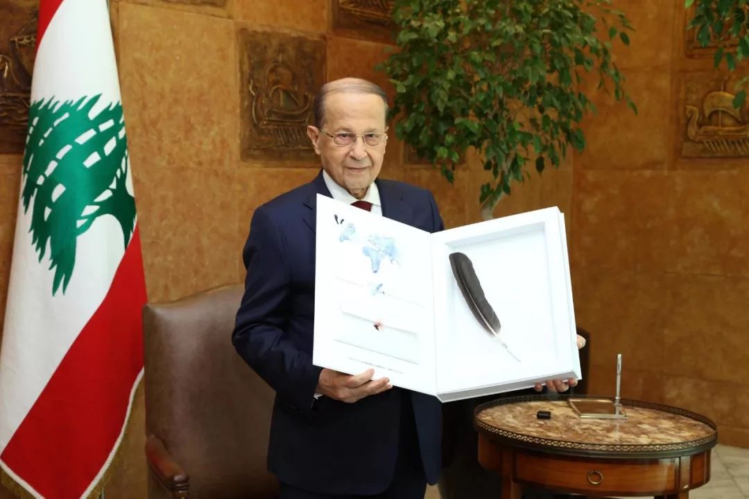 总统Michel Naim Aoun还特别拿着信拍了一张照片