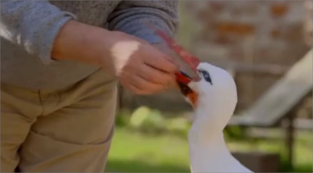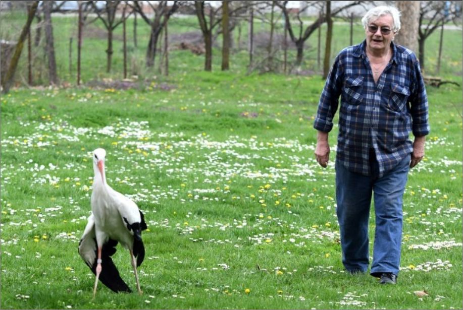 老人于是决定留下这只白鹳,并给她取名叫玛琳娜
