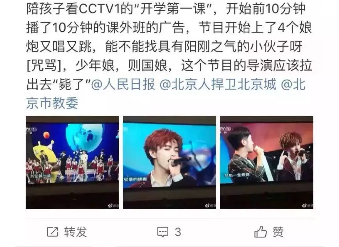 央视的《开学第一课》,因为超长广告、满屏小鲜肉,被家长吐槽。