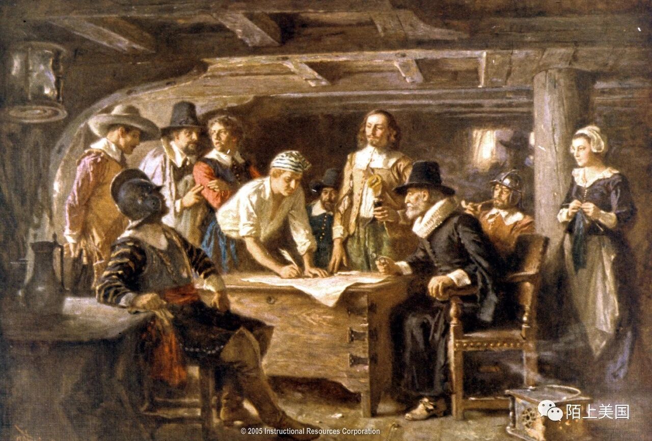 在这里,他们面对着来到新大陆的第一个危机:由于到达地在原来的特许和合同规定范围之外,于是某些乘客认为他们一旦上岸就可以各行其事,更不必履行对投资者的义务。