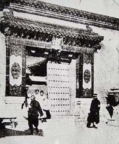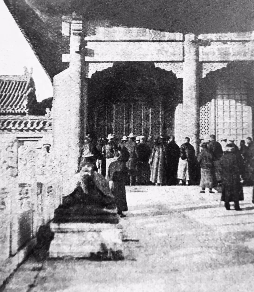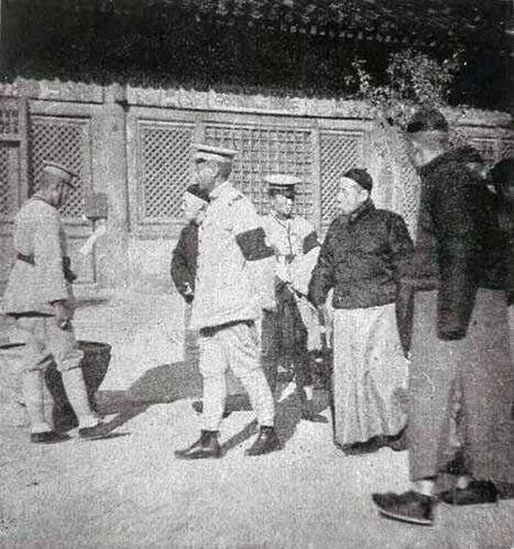图为鹿钟麟(中)由清室代表引导查看永寿宫。鹿钟麟,字瑞伯,西北军冯玉祥部下,1924年“北京政变”中率兵入城,奉命驱逐溥仪出宫。