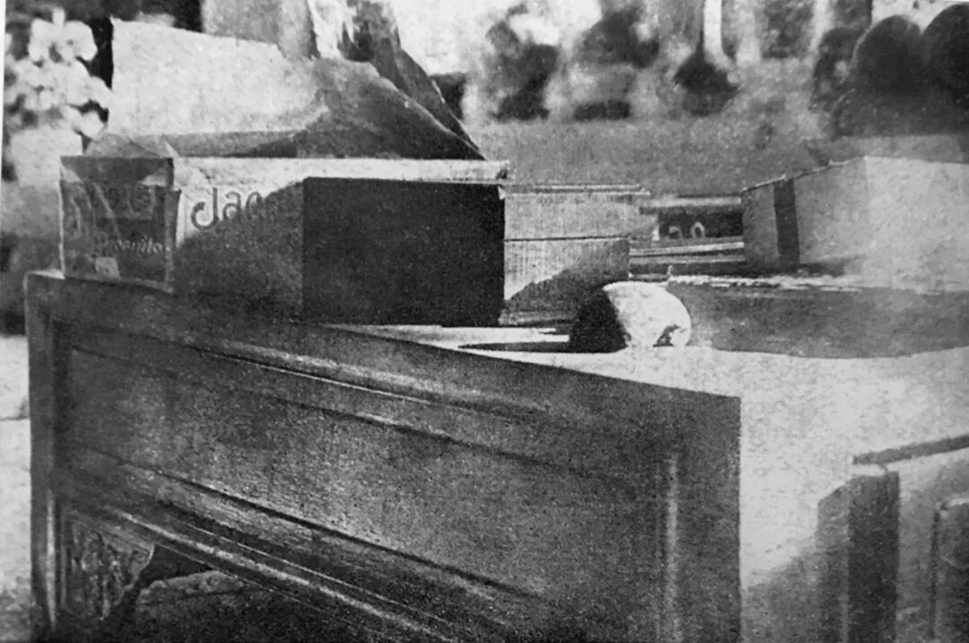 婉容出宫时,储秀宫南窗旁桌子上的饼干匣和未吃完的半个苹果。
