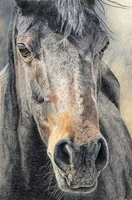 彩铅具有很好的表现力,它和素描是相通的,技法方面如果你的功底扎实,可以塑造出逼真的毛发和细微的变化。颜色上的种类也很多,足够画出丰富色彩,水溶性彩铅结合水彩可以画出特别的效果。