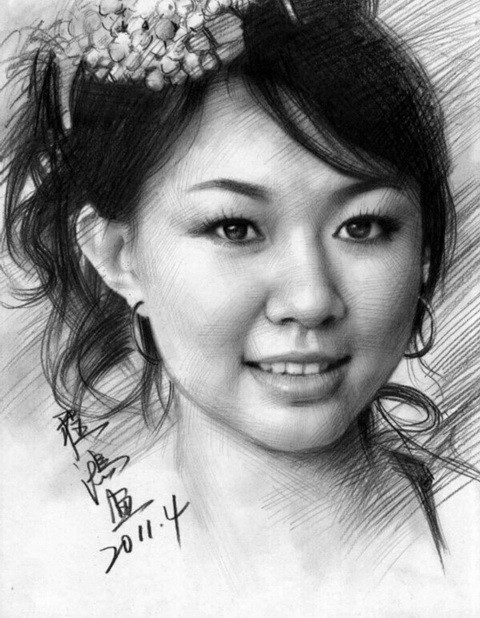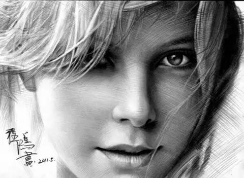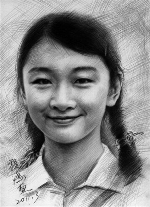 中国画家程鸿,系杭州桐庐县汾水镇人,自幼痴迷绘画。靠一支笔,一个背包,走遍了大半个中国,沿街摆摊给人画肖像10余年。其间创作了大量的名人人物肖像,并销往十余个国家。素描是单纯以线条描写事物,原于西方绘画的一种基础能力,以单线条塑造刻画对象的形体、结构、质感、光感的绘画形式。画家程鸿,民间创作十余年,以独特的手法,形成自己的风格。