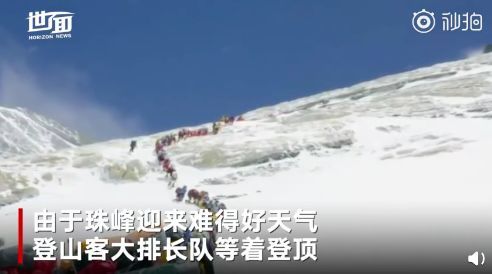 两天前,一则关于珠穆朗峰的视频登上了微博热搜。视频里,穿着醒目冲锋衣的登山者在高耸的悬崖峭壁上排起了长龙一样的队伍。