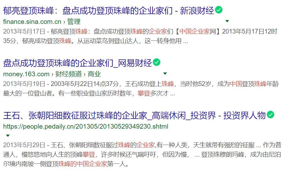 王石之后,郁亮、黄怒波、张朝阳、史玉柱、王秋杨、王静等也相继登上珠峰。征服珠穆朗玛峰这个世界之巅也成了中国企业家最爱挑战的事情之一。