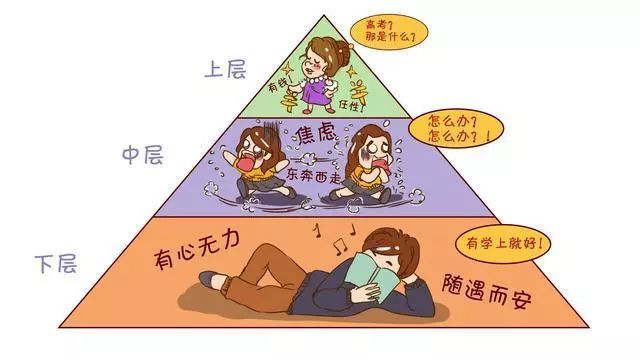 即,上层无忧无虑,中层过度焦虑,底层放弃教育。