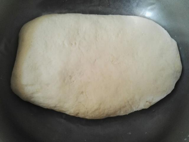 4、面团发好后,取出面团,不用揉面,直接用擀面杖擀成厚度约2厘米的长成形薄片。