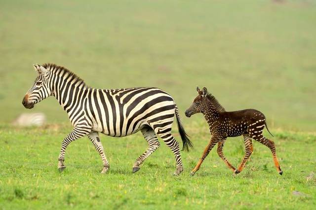 在我们印象中,斑马身上的花纹都是条纹状的,黑白相间,看上去十分可爱。不过你见过波点状的斑马吗?身上的图案不再是条纹的,而是一点一点的斑点状。近日在肯尼亚真的发现了一匹这样的小斑马,如此奇特的发现立马在互联网上引起了轰动,网友们都被这可爱的斑点斑马给征服了。