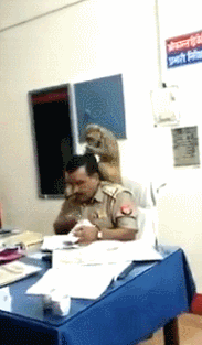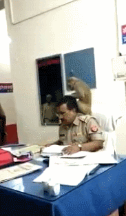 [据德维韦迪介绍,这只猴子时下午就跑进警局,咬了一名女警员,“那之后,它坐在我桌子上,我试图移动时,它又攻击了我。后来它就在我的椅子上安顿下来,开始拨弄我的头发。”