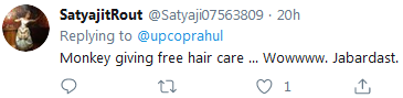 用户@Satyaji07563809调侃,这是“猴子在免费护发”。