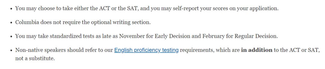 哥大官网截图:ED申请最晚的SAT考试时间是11月;RD申请最晚2月。