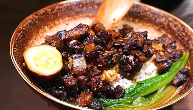 但是最诱人的,还是那份卤肉饭,特别是出锅那一刻,色泽诱人的卤肉汁焖在大米上,让人馋得直流口水,真想去她家蹭饭吃。你喜欢这样的卤肉饭吗?