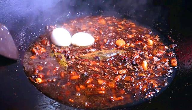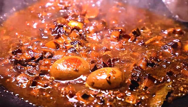 等到卤肉饭煮好以后,李子柒掀开锅盖的那一刻,看到鸡蛋已经煮得很入味,锅里的卤肉咕嘟咕嘟冒泡,色香味俱全,非常诱人。