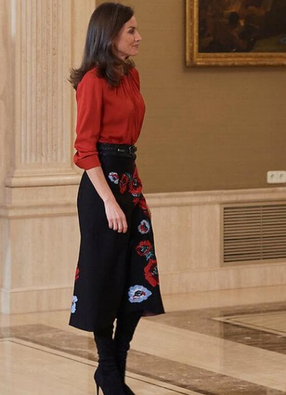 虽然西班牙王后已经47岁了,但气质和衣品依旧成为大家效仿的对象。近日,莱蒂齐亚在皇宫出席招待会,穿着一袭红色衬衫搭配黑色花朵刺绣长裙,举手投足间将优雅大气展现得淋漓尽致,虽然只是一个侧面好身材却依旧遮不住。