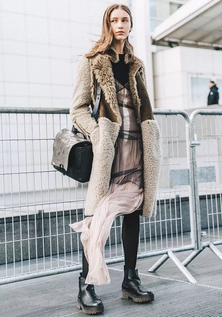 用仙气十足的纱裙来搭配大衣,这个冬天你也照样是美死人不偿命的小仙女。