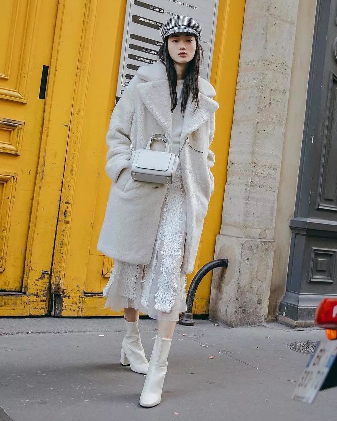 怕冷的话可以在里面叠穿高领毛衣,便可温暖美貌两不误。