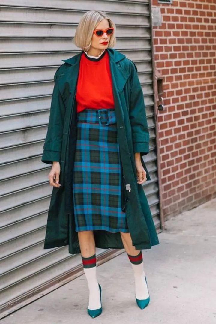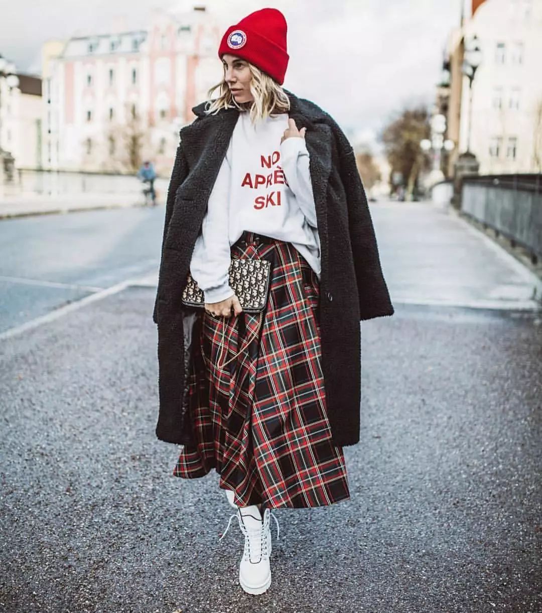 复古的格纹元素在今冬简直火爆了,用一条格纹裙搭配,便能轻松点亮整体造型,养眼而又腔调十足。