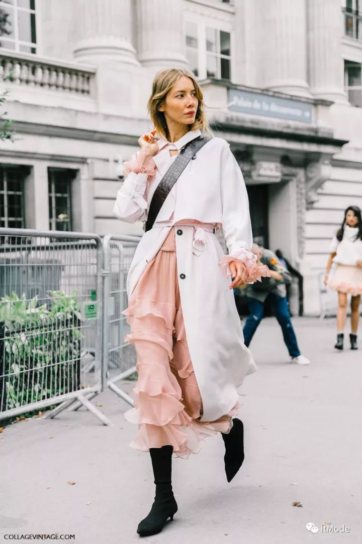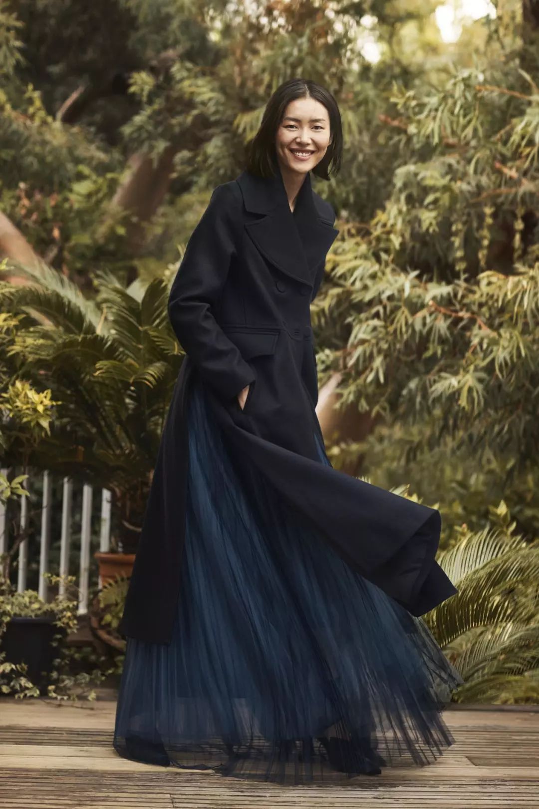 轻轻柔柔的纱裙亦能够削弱大衣的厚重感,彰显出飘逸的仙气之美。