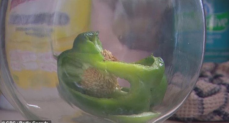 ]这对夫妇并没有受到惊吓,而是将切开的青椒,连同辣椒一起装进了一个玻璃容器,并向当地食品检验机构报告了这一发现。加拿大当局表示这一现象十分罕见,为了调查原因,将这只青蛙实施了安乐死,以便对其检验。