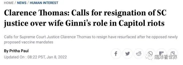 在本月初美国最高法院准备阻止拜登政府为了增加疫苗接种率而出台的部分或全部规定之后,要求托马斯辞职的呼声在社交媒体上重现。