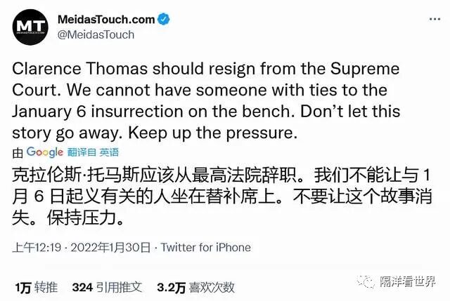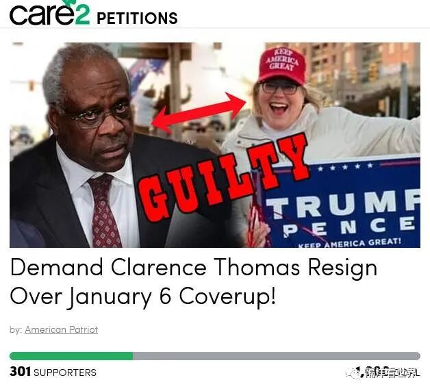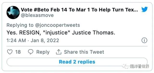 还有人写道:“是的。辞职,'不公正'的托马斯大法官。”