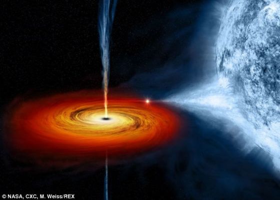 黑洞就像一个物质和能量聚集器,拥有令人敬畏的密度和引力,就连光线也无法逃脱它们的魔爪。质量相当于恒星的黑洞通常以伴星的物质为食,来自恒星的物质流向黑洞,在黑洞周围形成一个物质盘。这个物质盘温度极高,放射出X射线。在饮食方面,黑洞也会很挑剔,并不会吞噬所有物质,有时也会以粒子流的形式驱逐一些物质。由于这些喷流将物质和能量喷向周围太空,可供黑洞食用的物质减少。
