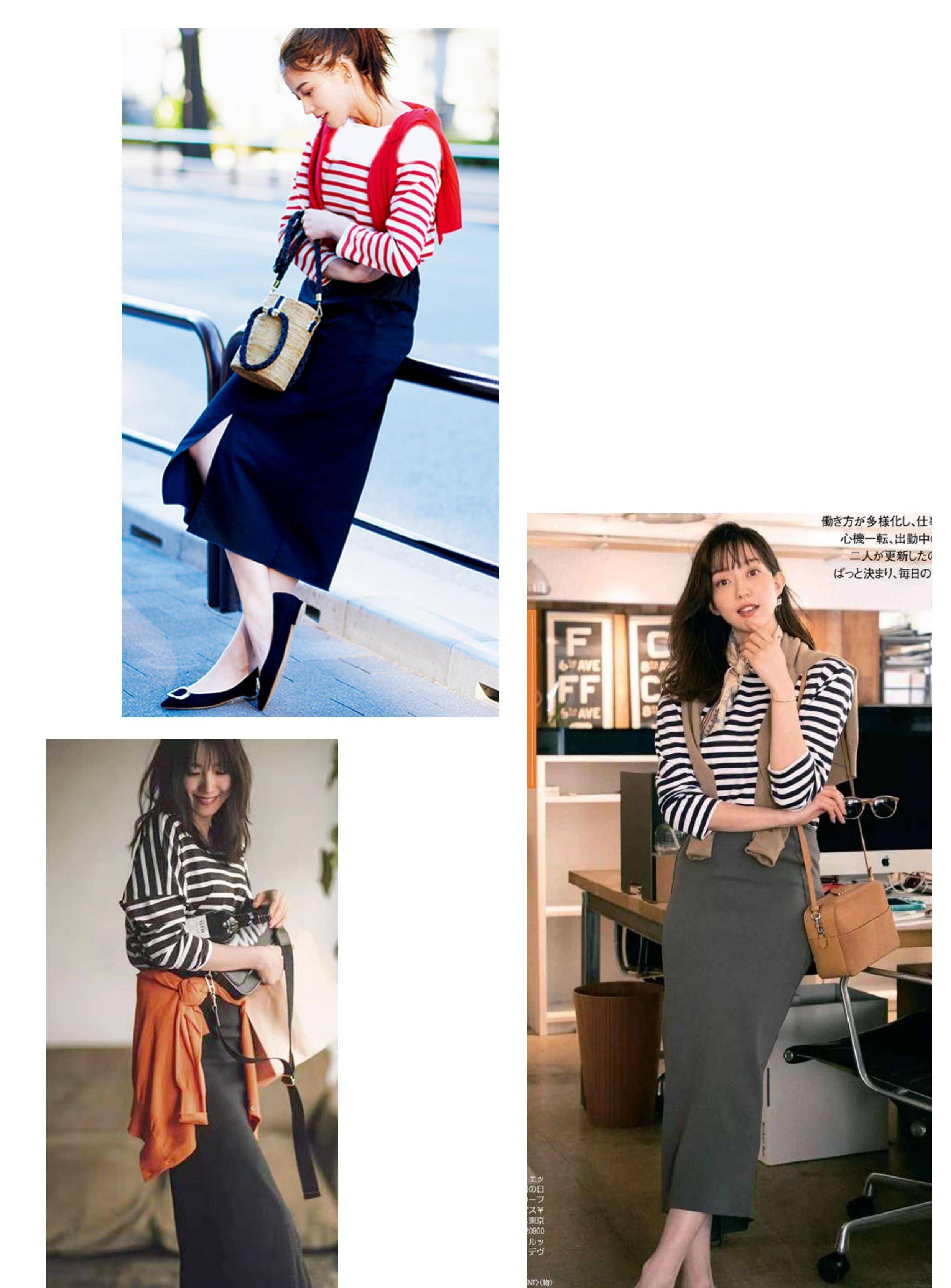 条纹元素,一向给人一种慵懒随性、休闲舒适的气息,也是它最经典的特质。正是因为如此,条纹针织衫总能给人一种清新自然、自由自在的气质,不管搭配什么样的品类都能呈现出和谐统一的氛围,自然百搭,赋予了条纹针织衫穿搭风格的气质,比如它搭配修身半身裙的时候,它们之间的组合就成功演绎出优雅女神的气质,高级精致又时髦,和今天秋天实在是太配了。