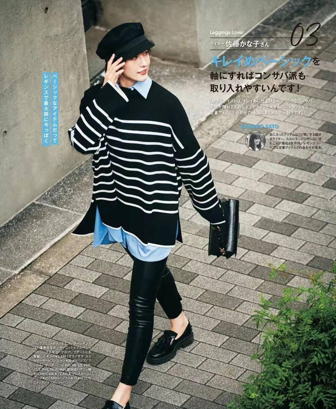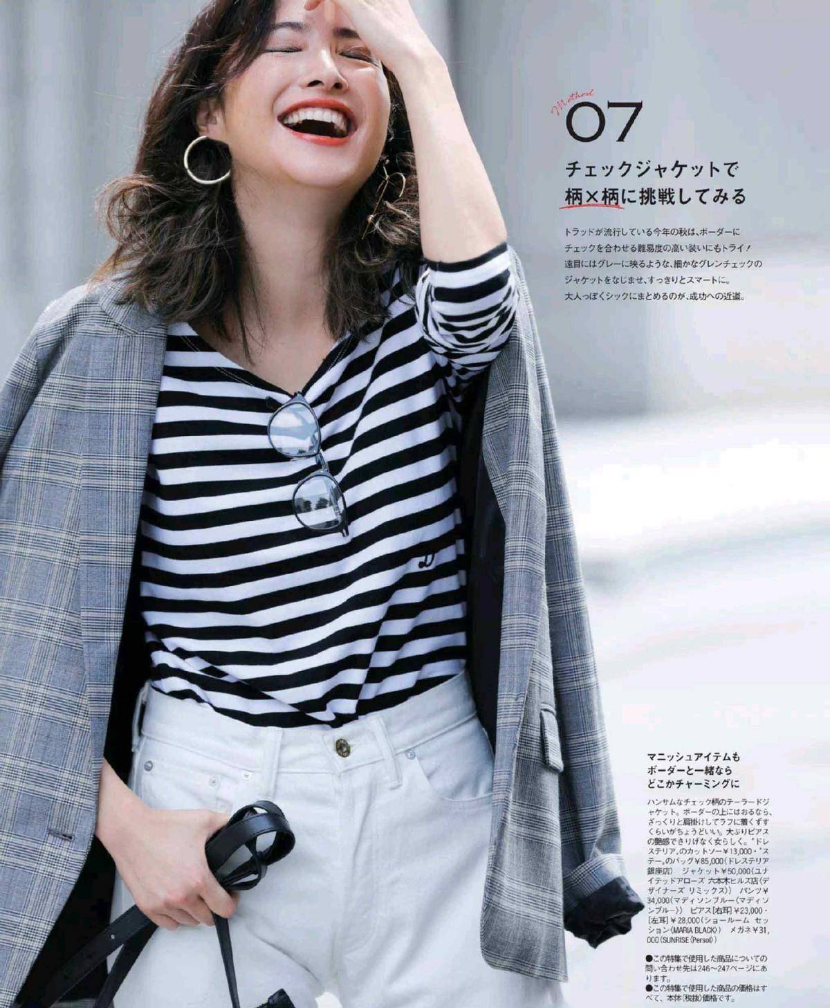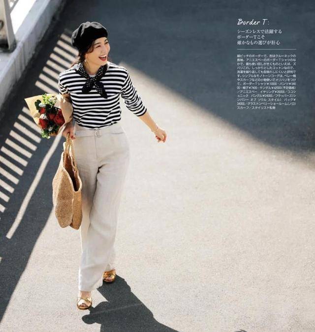 当然,如果拥有高挑的身高,平时又喜欢一些简约随性的慵懒风,小编觉得条纹针织衫配阔腿裤非常适合金秋LOOK。不仅可以展示自身的优势和特点,还可以运用服饰的亮点展现自身最大的优势和提升气质和形象,休闲简约又大气,稍作搭配,分分钟秒变时髦精。