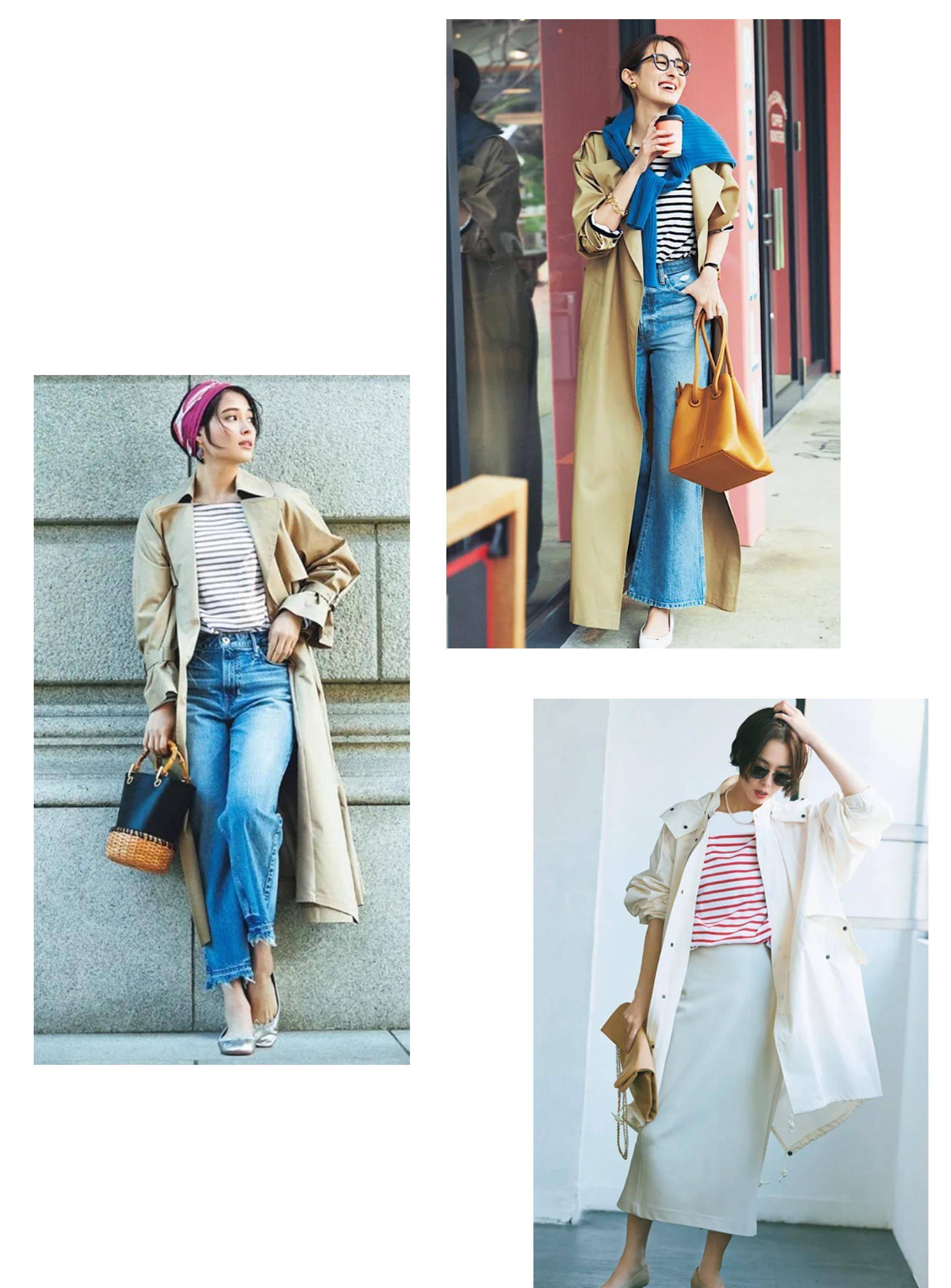 牛仔+条纹,经典耐看。当经典组合遇上又美又飒的风衣时,那一种全身都散发出的优雅与高级,就像走在塞纳河畔的奥黛丽赫本一样优雅自带气场。