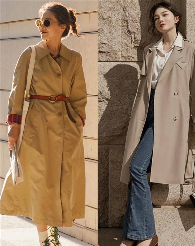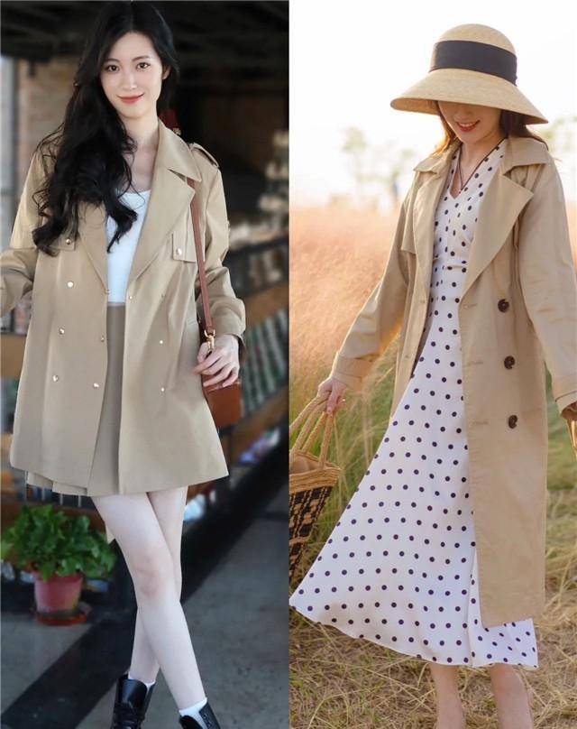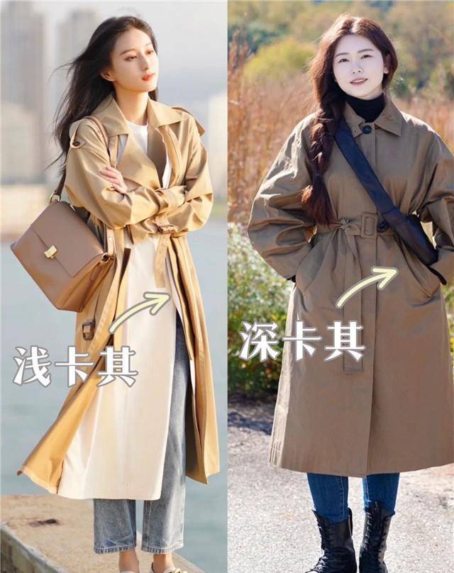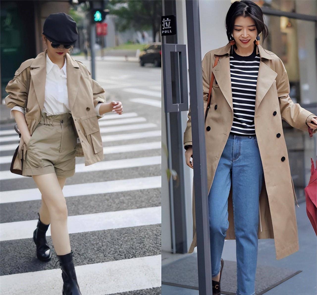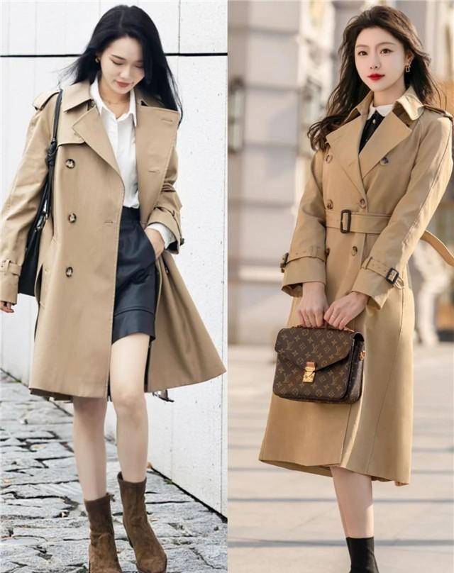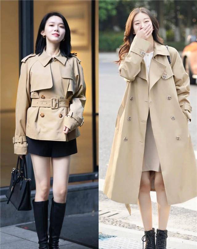 像下面的小姐姐们选择中长款的卡其色风衣,搭配的时候借助利落简洁的内搭和下装,凸显出了造型的层次感,明显地划分了个人的身材比例,凸显出了自身的曲线感,简单但是却很增高显瘦呢。